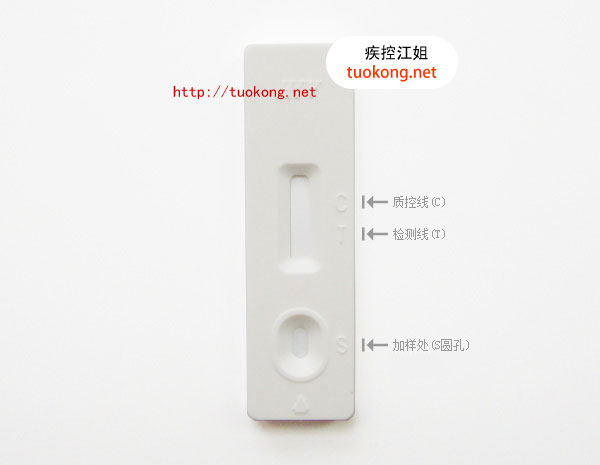 (2) 艾博试纸为单人份独立包装,撕开铝铂袋取出试纸。如图,试纸被嵌在白色塑料盒内,塑料盒上面标有清楚的标识,C为质控线,T为检测线,S(圆孔)为加样处; (3) 将配件都摆放好,操作时更加顺手。 |